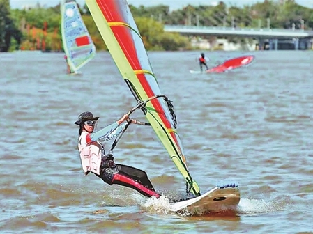 御風(fēng)破浪 帆板添色冰城云水間