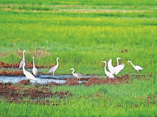 葦蕩連天碧 水鳥漫云空