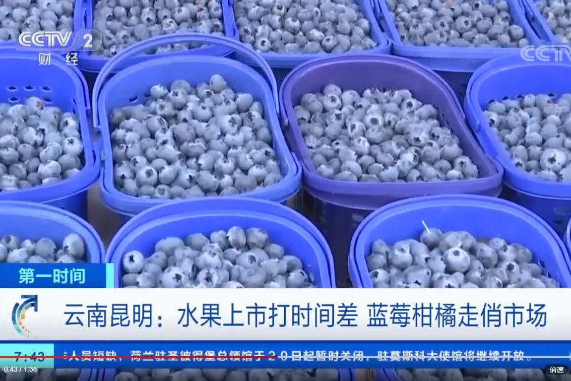 云南昆明:水果上市打時間差 藍(lán)莓柑橘走俏市場