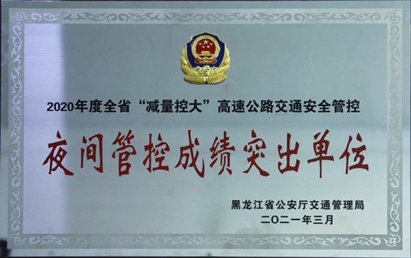 2020年,黑河市公安交通警察支隊(duì)在省公安廳交通管理局、市公安局黨委的堅(jiān)強(qiáng)領(lǐng)導(dǎo)下,緊緊圍繞“減量控大”工作部署,全力以赴投入到事故預(yù)防工作。特別是在夜間管控、超速治理、“四項(xiàng)違法”治理等工作中,取得了顯著成績。省公安廳交通管理局對黑河支隊(duì)認(rèn)真履職,嚴(yán)格管控給予充分肯定,并勉勵全市公安交警繼續(xù)投身公安交管事業(yè),特別是事故預(yù)防工作,以實(shí)際行動為建黨百年獻(xiàn)禮。支隊(duì)在家班子成員、授獎單位、支隊(duì)各科所隊(duì)負(fù)責(zé)同志參加授獎儀式。