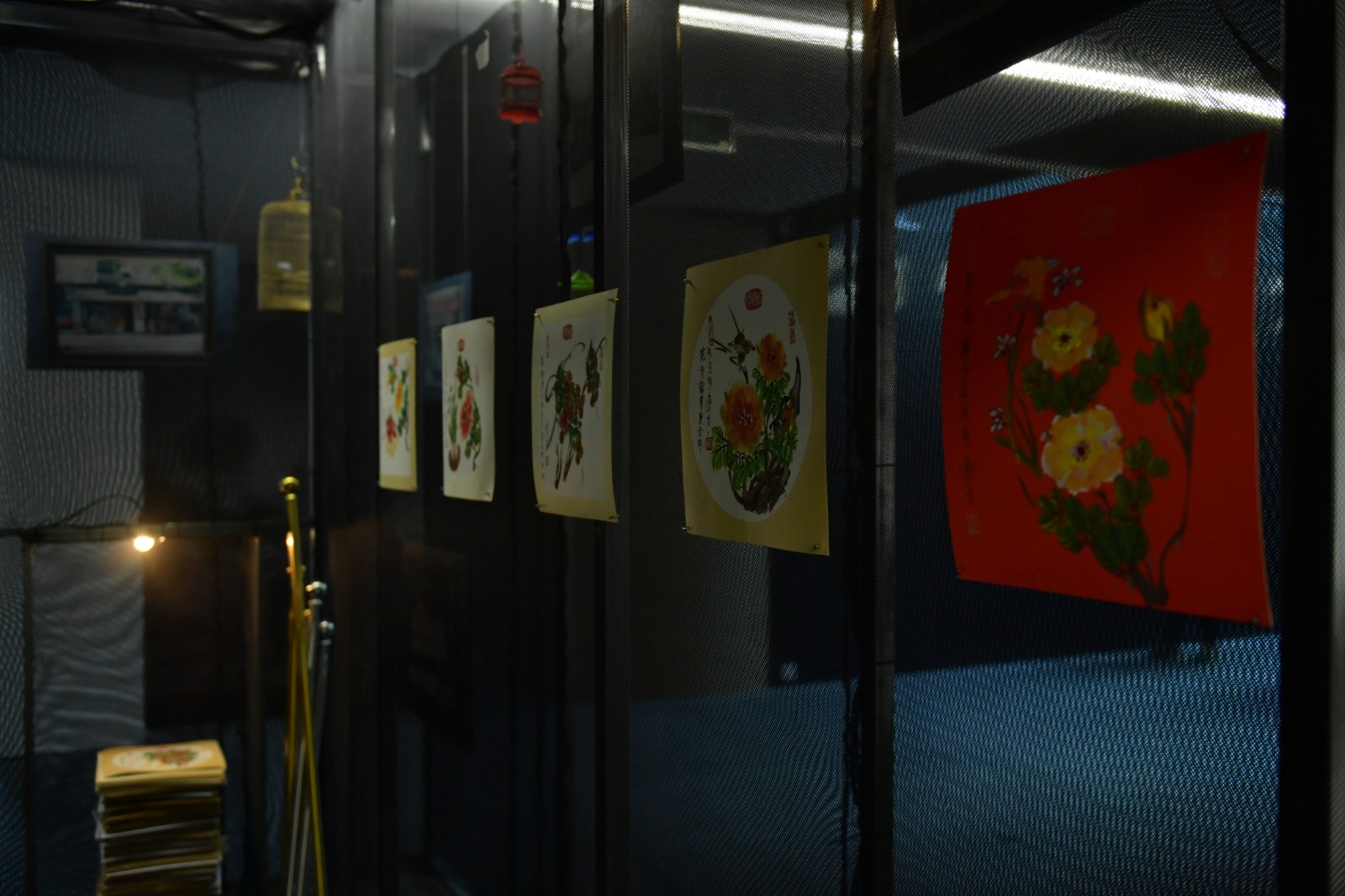 有趣的是,在陳淑瑜與未建筑設(shè)計(jì)研究所共同設(shè)計(jì)的“迷宮”裝置中,陳淑瑜以策展的方式又介入了耶丁的這段創(chuàng)作經(jīng)歷中。進(jìn)入暗室中的迷宮,觀眾沿著旋轉(zhuǎn)的樓梯向上前行,一路遇到的老照片,帶有時(shí)代氣息的畫作,被置于凹陷空間深處的視頻,以及需要置身于“洞穴”中去傾聽的獨(dú)白,都昭示著一種極強(qiáng)的私密性,在不見光亮的迷宮中,人們?cè)讵M窄而形態(tài)怪誕的通道中甚至無法錯(cuò)開身來,被迫與他人“分享”私密。