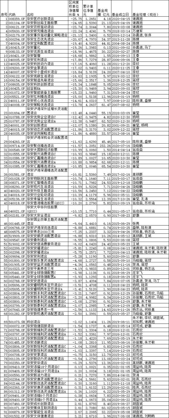 統(tǒng)計(jì)數(shù)據(jù)顯示,華安基金旗下老基金中,雖然不乏累計(jì)凈值優(yōu)異者,但隨著春節(jié)過后A股市場(chǎng)的持續(xù)震蕩回調(diào),這些基金近期也出現(xiàn)了較大幅度的凈值回撤現(xiàn)象。節(jié)后至今(2021年2月18日至2021年3月22日),該公司旗下有6只主動(dòng)權(quán)益基金虧損超過20%。