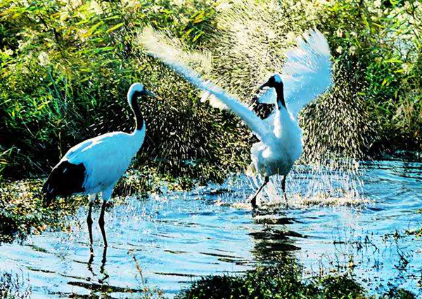 丹頂鶴之所以可以在齊齊哈爾的街上“溜達(dá)”,那也是有原因的,好生態(tài)為“溜達(dá)鶴”創(chuàng)造了優(yōu)勢(shì)條件。齊齊哈爾扎龍國(guó)家級(jí)自然保護(hù)區(qū)是我國(guó)以鶴類等大型水禽為主的珍稀水禽分布區(qū),是世界上最大的丹頂鶴繁殖地。這里葦草肥美、魚蝦豐盛,是鳥類繁衍的天堂,也是丹頂鶴的故鄉(xiāng)。每年有6種珍稀鶴類在此繁殖停歇,素有“鶴鄉(xiāng)”之稱。