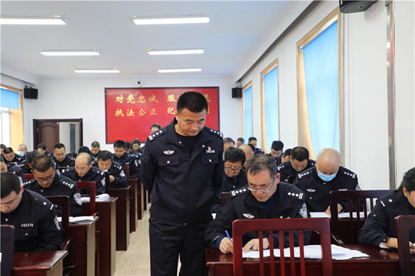 測試采取現(xiàn)場閉卷答題的方式進行,分局政委全程監(jiān)考??紙鲋刃蚓弧⒖硷L(fēng)嚴(yán)謹(jǐn),參考人員嚴(yán)格遵守考試紀(jì)律,細致審題、認(rèn)真作答,均在規(guī)定時間內(nèi)完成考試。