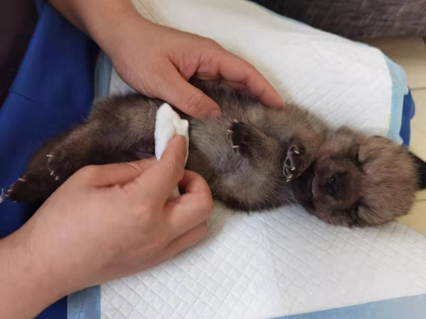 據(jù)工作人員介紹,5月上旬,哈爾濱極地公園北極狼家族新生多只北極狼寶寶。為保證母狼和新生小狼的安全,馴養(yǎng)師24小時通過監(jiān)控觀察北極狼媽媽和寶寶的情況。三天后,一只狼媽媽出現(xiàn)奶水不足、棄養(yǎng)小狼的情況。為保證狼寶寶的安全,馴養(yǎng)師決定將狼寶寶采用全人工技術(shù)飼養(yǎng),取得了成功。