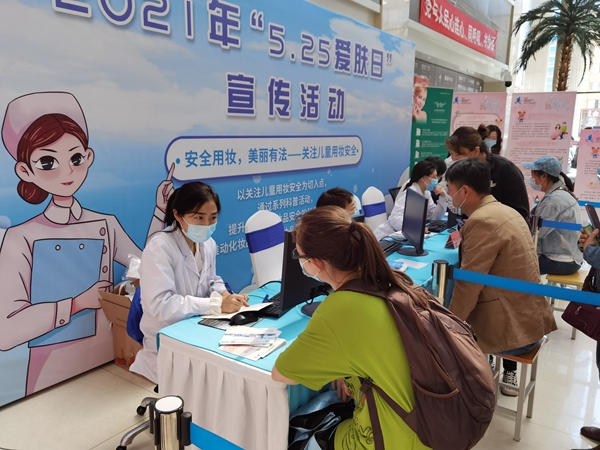 本次“5·25愛膚日”科普宣傳系列活動(dòng)的主題為“安全用妝,美麗有法——關(guān)注兒童用妝安全”。以關(guān)注兒童用妝安全為切入點(diǎn),宣傳普及化妝品安全、化妝品不良反應(yīng)監(jiān)測知識;發(fā)放宣傳單(冊);現(xiàn)場咨詢答疑、義診;設(shè)置宣傳板展示等形式,提升公眾對化妝品安全的科學(xué)認(rèn)知,推動(dòng)化妝品監(jiān)測深入開展。