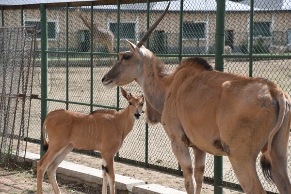 比起環(huán)尾狐猴媽媽的悉心照料,四月份在非洲草食動物散放區(qū)新出生的雄性小羚羊就很令人擔心,因為膽小的新手媽媽不會照料孩子,所以它不讓自家娃近身,不給娃吃奶。飼養(yǎng)員看到這種情況采取了人工輔助的辦法,把奶擠出來讓小羚羊吃到初乳。雖然媽媽一直躲著自己,但是小羚羊堅持要“親力親為”吃奶。飼養(yǎng)員就拿食物在前面引誘羚羊媽媽,讓它站立安穩(wěn)點,時間長一點,小羚羊慢慢靠近就可以吃到母乳啦!現(xiàn)在大羚羊媽媽已經(jīng)完全能接受這個小家伙了,常常依偎在一起。解決了小羚羊的吃飯問題后,小家伙就開始茁壯成長,一天比一天活波可愛。