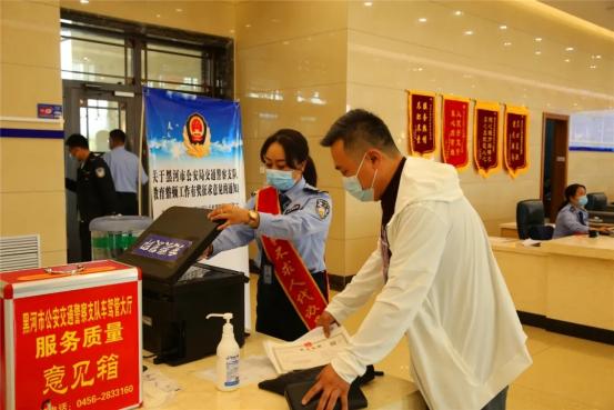 6月1日當天,黑河市公安交通警察支隊車駕管服務大廳共計接待群眾120余人次,辦理業(yè)務93筆,其中新舉措實施達到55項,受到廣大群眾的一致好評。