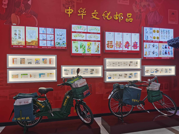 一進(jìn)門右手邊,是一個(gè)透明的郵政信筒,它來自2008年北京殘奧會(huì)閉幕式,現(xiàn)場有很多人通過它投遞出了《寄給未來的信》。左右兩側(cè)的墻上,懸掛著中華文化郵品,用郵票的形式展示傳統(tǒng)文化,重陽節(jié)、梅蘭芳舞臺(tái)藝術(shù)、景德鎮(zhèn)瓷器等具有紀(jì)念意義的郵票都位列其中,這里是集郵愛好者的天堂。