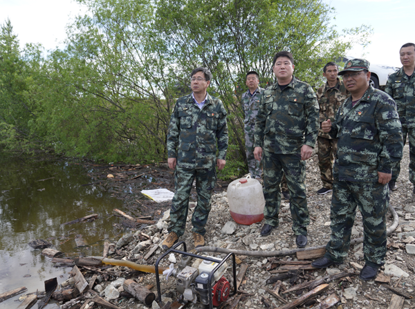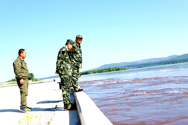 阿木爾林業(yè)局黨委書記胡守慶(右三)深入興安鎮(zhèn)口岸查看汛情情況