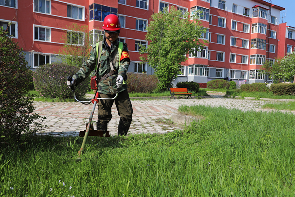 阿木爾林業(yè)局在修剪小區(qū)草坪