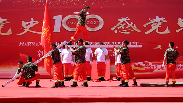 新林林業(yè)局黨委副書記、局長(zhǎng)張鶴松為演出致辭。演出在森林消防二大隊(duì)隊(duì)員激昂的鼓聲中拉開了帷幕,本次文藝匯演共13個(gè)節(jié)目,通過歌舞、詩朗誦、快板、大合唱等形式,回顧黨的光輝歷程,謳歌黨的豐功偉績(jī)。