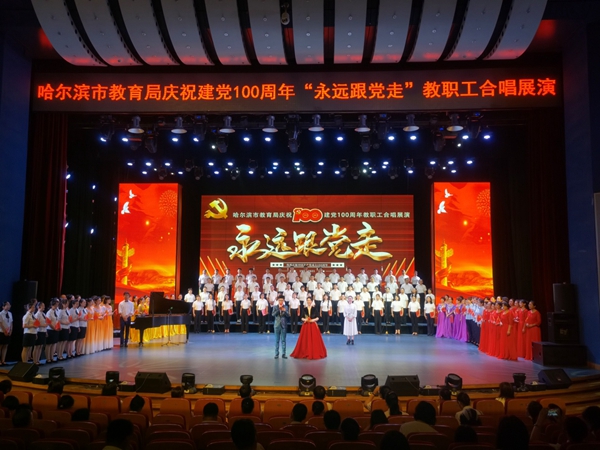 此次合唱展演是哈爾濱市教育局慶祝中國共產黨成立100周年系列活動之一,是推動黨史學習教育走深走實的生動載體,市教育局通過開展參與度高、覆蓋面廣、互動性強的展演活動,營造同慶百年華誕、共創(chuàng)歷史偉業(yè)的濃厚氛圍,凝聚起全市教育系統(tǒng)廣大黨員干部和教職員工永遠跟黨走、奮進新征程的磅礴力量,為建設黨和人民滿意的教育事業(yè)貢獻教育人的擔當,以優(yōu)異成績向黨的百年華誕獻禮。