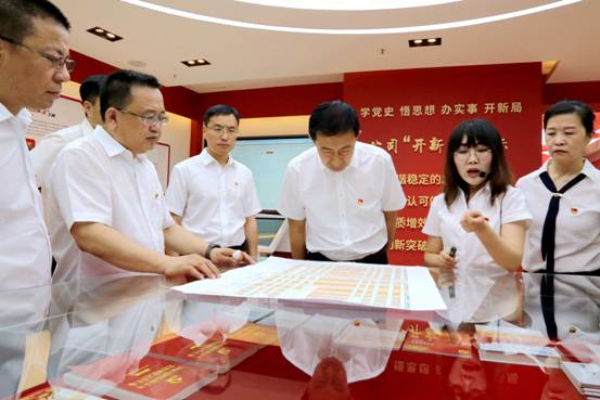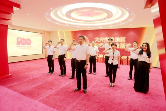 在地區(qū)黨史學(xué)習(xí)教育展館,面對鮮紅的黨旗,由區(qū)委書記王顯志領(lǐng)誓,區(qū)委理論學(xué)習(xí)中心組成員集體宣誓,重溫入黨誓詞,砥礪前進(jìn)初心,勇?lián)氊?zé)使命。