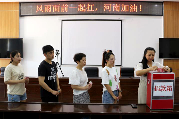 7月23日上午,捐款儀式在辦公樓五樓會議室舉行,干部職工紛紛慷慨解囊,50元、100元、200元……一份份愛心在這里匯聚傳遞。災(zāi)害無情,人有情,參加捐款的干部職工一起在“風(fēng)雨面前一起扛,河南加油!”的條幅上簽名,表達(dá)自己的心情,為河南人民加油打氣。目前,捐款款項已匯至紅十字會。
