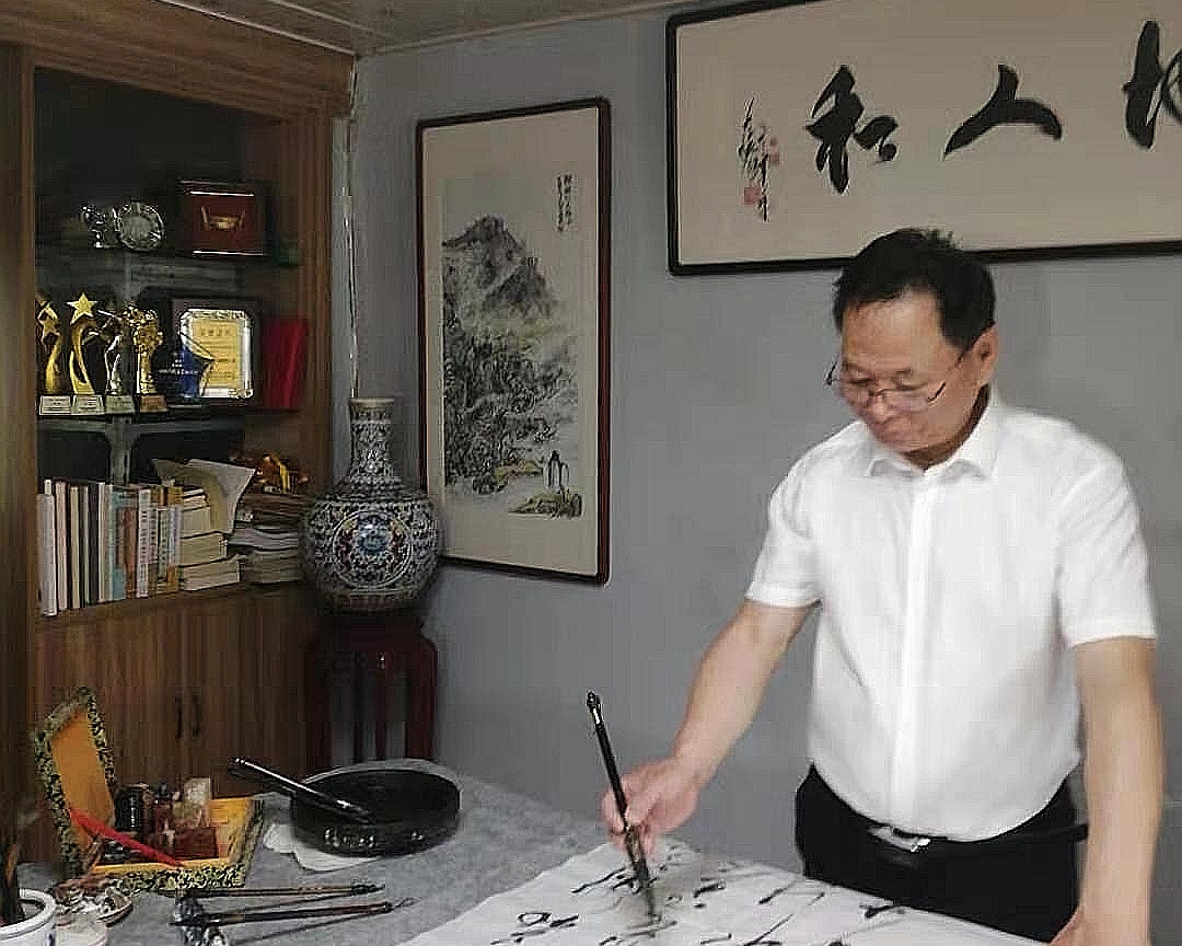 他每年向社會(huì)團(tuán)體贈(zèng)送書(shū)法作品百幅,內(nèi)容健康,有古詩(shī)詞、五字言、七字言、有毛澤東詩(shī)詞等,為弘揚(yáng)民族文化精神而努力。