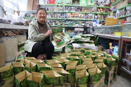 藍領(lǐng)山特產(chǎn)品店經(jīng)營業(yè)戶高桂杰正在為客戶發(fā)貨