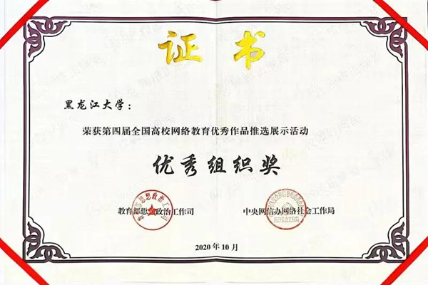 黑龍江大學(xué)一直高度重視網(wǎng)絡(luò)思政教育,曾獲全國(guó)大學(xué)生網(wǎng)絡(luò)文化節(jié)優(yōu)秀組織獎(jiǎng)、全國(guó)大學(xué)生網(wǎng)絡(luò)文化節(jié)和全國(guó)高校網(wǎng)絡(luò)教育優(yōu)秀作品推選活動(dòng)一等獎(jiǎng)、二等獎(jiǎng)等多項(xiàng)榮譽(yù)。作為黑龍江省高校網(wǎng)絡(luò)思政中心的依托建設(shè)高校,黑龍江大學(xué)承辦了3屆黑龍江省大學(xué)生網(wǎng)絡(luò)文化節(jié)和黑龍江省高校網(wǎng)絡(luò)教育優(yōu)秀作品推選展示活動(dòng),累計(jì)評(píng)選5000余件黑龍江省高校優(yōu)秀師生網(wǎng)絡(luò)文化作品,并推選出1882件黑龍江省優(yōu)秀高校師生作品參加全國(guó)評(píng)選。今后,黑龍江大學(xué)將繼續(xù)強(qiáng)化思想引領(lǐng),聚焦立德樹(shù)人,依托黑龍江省高校網(wǎng)絡(luò)思政中心,引領(lǐng)全省高校構(gòu)建新時(shí)代高等教育網(wǎng)絡(luò)思想政治工作體系。