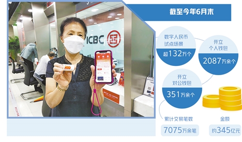 數(shù)據(jù)顯示,截至9月10日,工行北京分行試點(diǎn)的數(shù)字人民幣應(yīng)用場景達(dá)8萬多個(gè),集中在與社會(huì)民生緊密相關(guān)的交通出行、餐飲住宿、購物消費(fèi)、旅游觀光、醫(yī)療衛(wèi)生、通信服務(wù)、票務(wù)娛樂7大類場景。中國人民銀行近期發(fā)布的《中國數(shù)字人民幣的研發(fā)進(jìn)展》白皮書顯示,截至今年6月末,數(shù)字人民幣試點(diǎn)場景已超132萬個(gè),開立個(gè)人錢包2087萬余個(gè)、對公錢包351萬余個(gè),累計(jì)交易筆數(shù)7075萬余筆、金額約345億元。