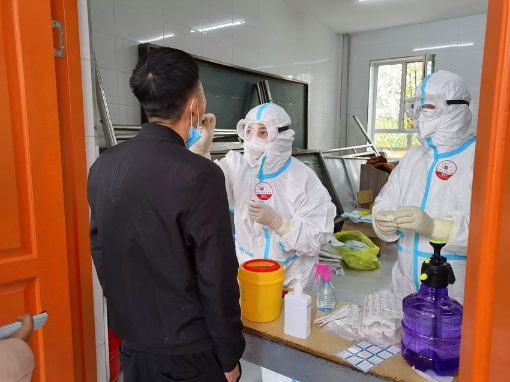 分到黑山鎮(zhèn)核酸采集的21名隊員,則由張艷護士長帶隊,當?shù)匾褯]有20人以上接待能力的賓館,支援隊伍在鎮(zhèn)衛(wèi)生院的病房臨時休整4個小時后,集體出發(fā)到黑山鎮(zhèn)下設的50個村屯進行核酸采集工作。