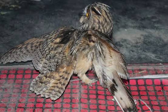 黑龍江經(jīng)濟(jì)網(wǎng)訊(韓強(qiáng) 崔紅霞 記者馬朝林)近日,大興安嶺林業(yè)集團(tuán)公司新林林業(yè)局大烏蘇林場(chǎng)致電林業(yè)局森林資源管理科,稱在林場(chǎng)職工自家庭院中發(fā)現(xiàn)了一只受傷的像貓頭鷹的大鳥。接到電話后,林業(yè)局資源管理科野生動(dòng)物救助管理人員迅速趕到大烏蘇林場(chǎng),通過(guò)進(jìn)一步觀察,這只大鳥靜臥在庭院中,其右側(cè)翅膀有明顯傷痕且體質(zhì)較弱,導(dǎo)致無(wú)法自由飛翔,初步判斷應(yīng)該是飛行過(guò)程中撞擊所致。