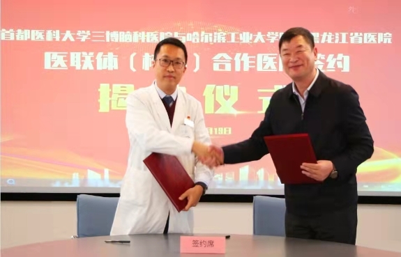黑龍江經(jīng)濟(jì)網(wǎng)訊(林穎 董宇翔 梁新立) 10月19日,黑龍江省醫(yī)院與首都醫(yī)科大學(xué)三博腦科醫(yī)院結(jié)成醫(yī)聯(lián)體簽約揭牌儀式在北京舉行。今后雙方將在遠(yuǎn)程會(huì)診、技術(shù)指導(dǎo)與支持、人才培養(yǎng)和資源共享等多方面開(kāi)展緊密合作,攜手共進(jìn),優(yōu)勢(shì)互補(bǔ),共同提高在神經(jīng)科學(xué)領(lǐng)域臨床、科研及教學(xué)水平,提升醫(yī)療服務(wù)能力,切實(shí)為黑龍江省及周邊地區(qū)百姓提供優(yōu)質(zhì)的醫(yī)療衛(wèi)生服務(wù)。
