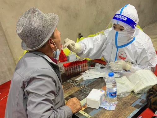 10月30日下午17時(shí),畢贏接到單位領(lǐng)導(dǎo)的通知,準(zhǔn)備好支援社區(qū)核酸采集,有可能今晚22點(diǎn)開始,有可能明早8點(diǎn)開始。就這樣,畢贏趕緊通知親戚朋友婚禮暫時(shí)取消,馬上要去社區(qū)支援。10月31日早8點(diǎn),由省醫(yī)院吳丹紅護(hù)士長帶隊(duì),畢贏一行40名護(hù)士下沉到了新香坊鎮(zhèn)社區(qū)為那里的居民進(jìn)行核酸采集支援。就這樣,婚紗面前畢贏毅然決然地選擇了防護(hù)服,和她的戰(zhàn)友們并肩奔赴社區(qū)支援核酸采集,因?yàn)樗酪咔檫^后的婚禮才會(huì)更有意義。