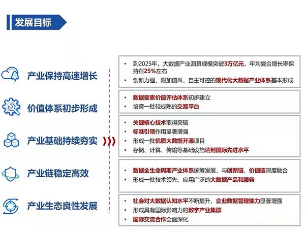 規(guī)劃明確,到2025年,大數(shù)據(jù)產(chǎn)業(yè)測算規(guī)模突破3萬億元。其中特別提出,數(shù)據(jù)要素價值評估體系初步建立;產(chǎn)業(yè)基礎(chǔ)持續(xù)夯實,關(guān)鍵核心技術(shù)取得突破;形成一批技術(shù)領(lǐng)先、應(yīng)用廣泛的大數(shù)據(jù)產(chǎn)品和服務(wù)。