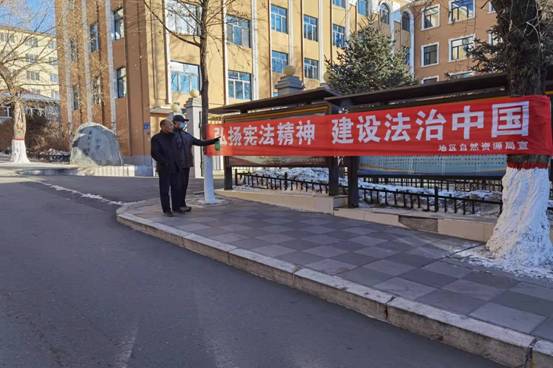 大興安嶺地區(qū)自然資源局在機關(guān)辦公樓靠近街道的顯著位置懸掛標語條幅,組織志愿者來到衛(wèi)東社區(qū)朝陽路東五道街開展“國家憲法日”主題宣傳活動。志愿者向過往群眾和社區(qū)居民發(fā)放了《憲法》《土地管理實施條例》等法律法規(guī)內(nèi)容摘要,積極宣傳了憲法知識和自然資源政策法規(guī),使法治觀念更加深入人心。