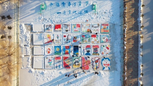 雪后的籃球場(chǎng),變身為學(xué)生們的巨型畫(huà)板,大家在這里以“迎接建黨100周年”、“迎接北京2022冬奧會(huì)”為主題,在雪地上涂鴉,把雪后的校園裝扮得與眾不同。學(xué)生們發(fā)揮想象,用色彩描繪出更快、更高、更強(qiáng)的奧林匹克精神,以涂鴉展現(xiàn)著當(dāng)代中學(xué)生的青春風(fēng)采。