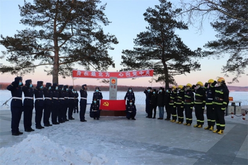 呼瑪縣素有紅色邊疆的美譽,共建聯(lián)盟前往呼瑪縣江邊第173號界碑,在莊嚴的黨旗和界碑下,呼瑪縣森林消防大隊黨委書記苗亮亮帶領(lǐng)全體黨員同志重溫了入黨誓詞,舉行集體宣誓儀式,旨在進一步強化廣大應(yīng)急人的政治意識,增強黨性觀念,筑牢政治忠誠,永葆紅色氣質(zhì)。