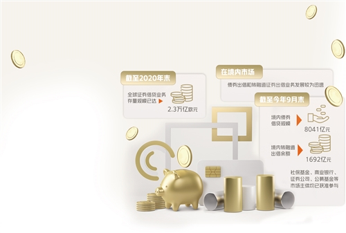 證券出借業(yè)務(wù)俗稱“融券”,是境內(nèi)外資本市場提高二級市場流動性的常見交易制度,發(fā)展較為成熟。截至2020年末,全球證券借貸業(yè)務(wù)存量規(guī)模已達2.3萬億歐元。在境內(nèi)市場,債券出借和轉(zhuǎn)融通證券出借業(yè)務(wù)發(fā)展較為迅速,截至今年9月末,境內(nèi)債券借貸規(guī)模8041億元,境內(nèi)轉(zhuǎn)融通出借余額1692億元,社?;?、商業(yè)銀行、證券公司、公募基金等市場主體均已獲準(zhǔn)參與。