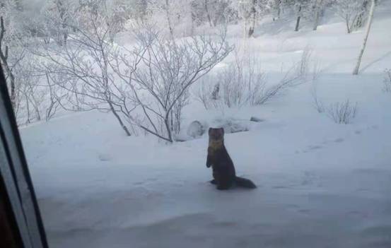 “冰雪畫廊”工作人員介紹,“紫貂只在天氣暖和或者雪不是很大時(shí)才會(huì)出現(xiàn),這幾天天氣回暖,紫貂出現(xiàn)的相對(duì)頻繁一些。雖然投喂了火腿腸,但是它們很警覺,要等人離開很久,才會(huì)靠近食物?!?/span>