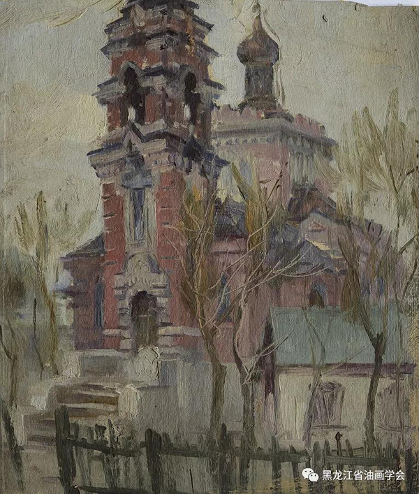 《阿列克謝耶夫教堂》 28.5×24.2cm 紙本油彩 1959年