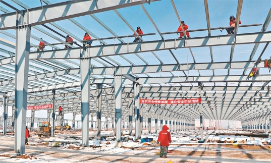 工人進(jìn)行鋼結(jié)構(gòu)安裝作業(yè)。宋燕軍 黑龍江日報(bào)全媒體記者 姚建平攝