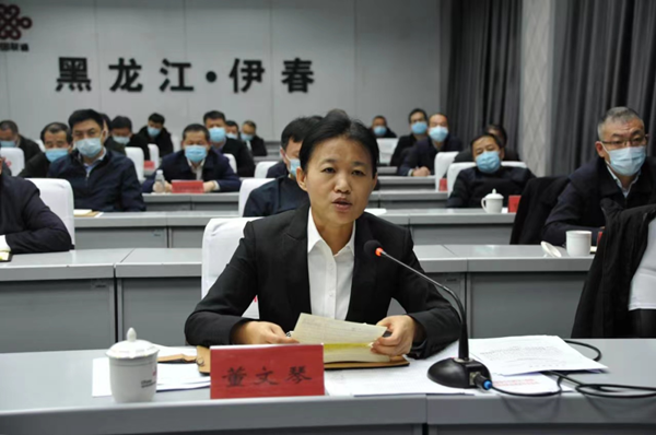 伊春市長、市應對新冠肺炎疫情工作領導小組指揮部總指揮董文琴作工作部署。周英東、孟利、楊彬、李立新、陶明海、趙立濤、周世興、劉今、張東海、韓殿君出席會議。