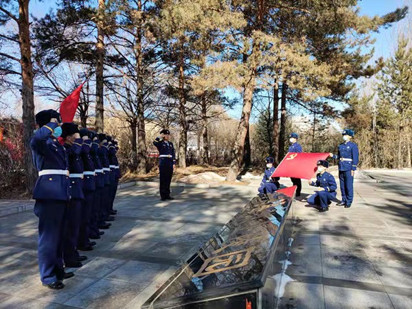 在革命烈士紀(jì)念碑前,全體指戰(zhàn)員整齊列隊(duì),莊嚴(yán)肅穆,向長(zhǎng)眠在這里的革命烈士致以崇高的敬意,深切緬懷那些為了新中國拋頭顱、灑熱血的先烈們。緊接著,指戰(zhàn)員面向紀(jì)念碑,高舉右手,重溫入黨誓詞。