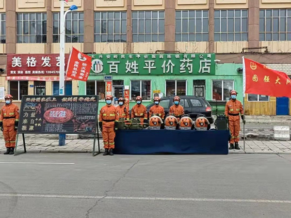 圖強(qiáng)林業(yè)局設(shè)立定點(diǎn)宣傳臺,通過展板和森林防滅火裝備向群眾普及森林防火常識(趙明 攝)