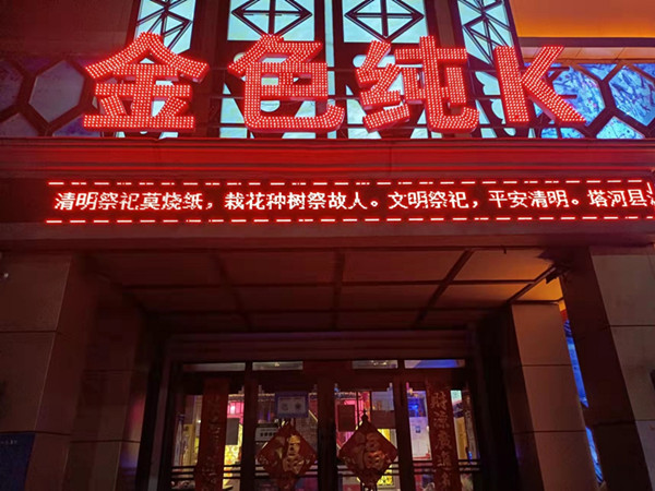 宣傳活動中,塔河縣消防救援大隊緊密結合轄區(qū)工作實際,充分利用LED顯示屏具有宣傳效果好、時間不受限、受眾面廣等特點,播放消防宣傳公益廣告和消防標語滾動字幕。各重點單位在播放本單位信息的同時,將消防知識作為一項必播內(nèi)容,進行全天候、不間斷播放,塔河縣消防救援大隊還定期對此項工作進行督導檢查,確保播出頻次和播出數(shù)量達到宣傳效果,使廣大市民通過這種快捷、靈活的宣傳方式,隨時隨地觀看到主題鮮明、寓教于樂的消防知識宣傳。