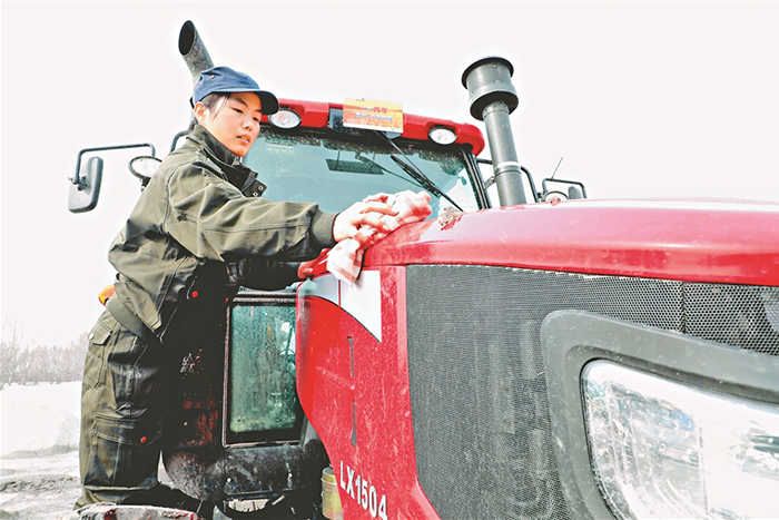 在不斷的實(shí)踐練習(xí)中,杜春燕不僅成長(zhǎng)為全能農(nóng)機(jī)手,還成為先進(jìn)農(nóng)機(jī)技術(shù)的推廣員,她把自己所掌握的技能搬到了田間課堂,隔三岔五地向農(nóng)場(chǎng)里的農(nóng)戶介紹新機(jī)械的工作原理。