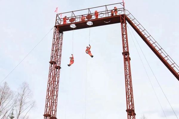 訓(xùn)練過程中,中隊(duì)長馬振濤對高空索滑需要注意的事項(xiàng)和方法方式進(jìn)行了詳細(xì)講解,并將在訓(xùn)練過程中容易出現(xiàn)的錯誤動作,結(jié)合實(shí)際訓(xùn)練做了現(xiàn)場演示。指導(dǎo)參訓(xùn)人員克服恐懼心理,嚴(yán)格按照理論輔導(dǎo)、教學(xué)大綱、索滑降訓(xùn)練的步驟進(jìn)行科學(xué)訓(xùn)練。堅(jiān)持由簡到繁、由易到難、循序漸進(jìn)的原則,對安全背帶穿戴、索控器具裝卸繩、不同高度滑降、遇到突發(fā)問題快速處理等內(nèi)容進(jìn)行了系統(tǒng)訓(xùn)練。一次次繩結(jié)、一次次索滑降、一次次健步如飛……千錘百煉中隊(duì)員們逐步熟練了滑降的操作流程,克服了恐懼心理,取得了明顯成效。