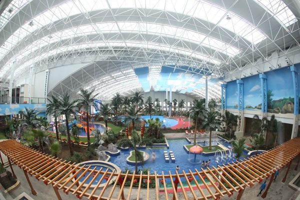 春日的楓葉小鎮(zhèn)陽光明媚,草坪正在孕育清新的爽綠,暖暖的泉池坐落在宏偉建筑之中。楓葉小鎮(zhèn)溫泉度假村建設(shè)了38個(gè)功能各異的溫泉泡池,組合成超過6000平方米養(yǎng)生中心,引用了世界十大地質(zhì)奇跡之一的冰島藍(lán)湖溫泉概念,構(gòu)建成水域面積近3000平方米的大型室外湖泊型溫泉。該度假村一比一引進(jìn)了全球著名的德國卡拉卡拉水療館,同時(shí)設(shè)有SPA中心、國際自助美食餐廳、獅子星寶貝樂園、30000平方米婚禮主題花園、1300平方米無柱式宴會(huì)廳等。