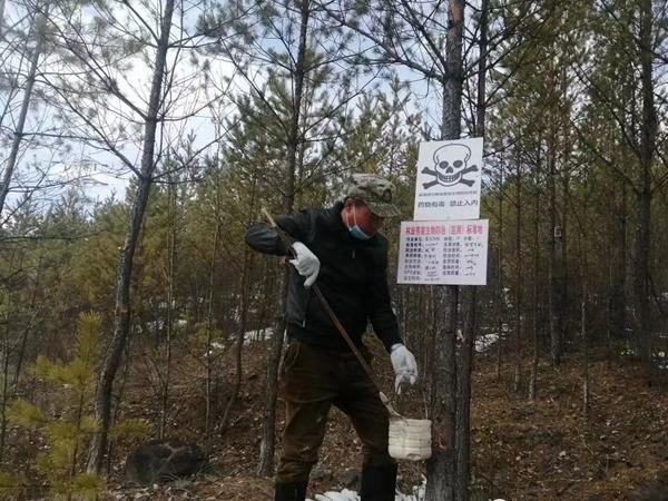 采取科學(xué)有效的防治方法,根據(jù)不同區(qū)域、不同特點(diǎn)投放不孕劑和涂抹防啃劑進(jìn)行防治。為防止人畜中毒,提前張貼林場鼠害防治公告、在防治區(qū)內(nèi)樹立警示標(biāo)牌,避免人員、牲畜進(jìn)入投放鼠藥區(qū)域。