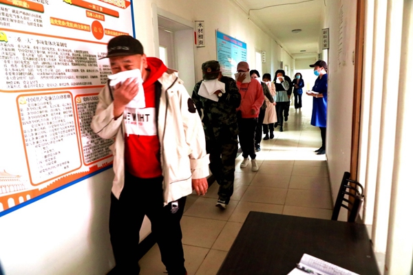 阿木爾林業(yè)局開展防災(zāi)減災(zāi)應(yīng)急演練現(xiàn)場,干部職工正在沿逃生路徑有秩序疏散(王力 攝)