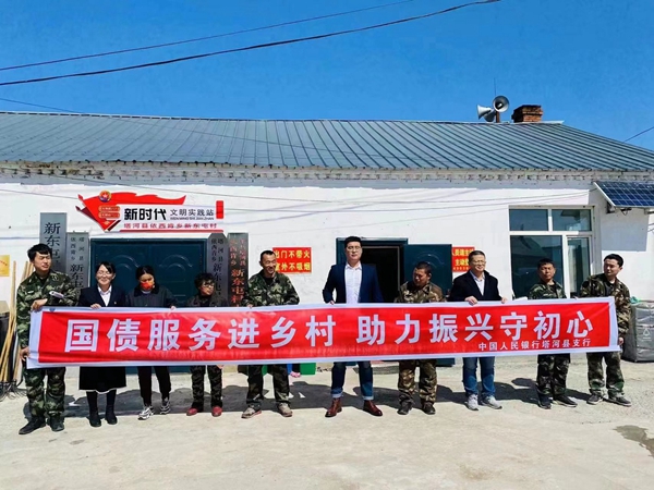 “簽訂協(xié)議+駐村宣傳”。人民銀行塔河縣支行選取離城鎮(zhèn)較遠(yuǎn)且人口居住相對(duì)集中的依西肯鄉(xiāng)作為此次“國債下鄉(xiāng)”宣傳點(diǎn)。通過與依西肯鄉(xiāng)人民政府簽訂“國債下鄉(xiāng)”戰(zhàn)略合作協(xié)議,充分發(fā)揮村委貼近民眾的優(yōu)勢(shì),聘任村委干部擔(dān)任國債宣傳員,做好“國債下鄉(xiāng)”的知識(shí)宣傳,建立國債宣傳長效機(jī)制,確?!皣鴤锣l(xiāng)”惠民便民村村通。