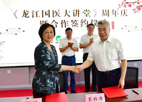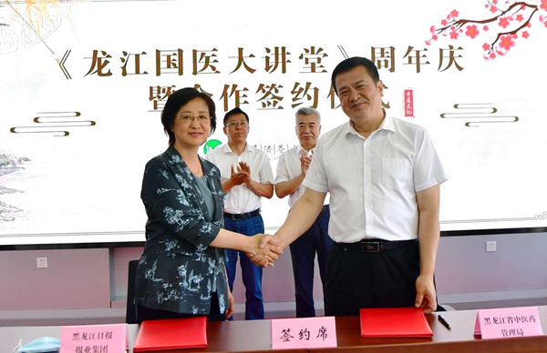 活動現(xiàn)場,黑龍江日報報業(yè)集團分別與黑龍江省中醫(yī)藥管理局、黑龍江省中醫(yī)藥科學院進行了合作簽約。省中醫(yī)藥管理局黨組書記、局長張曉峰說:黑龍江日報報業(yè)集團具有廣泛的社會影響力,我們將以框架協(xié)議的簽署為契機,在中醫(yī)藥文化知識宣傳普及、中醫(yī)藥產業(yè)宣傳推介方面進一步加深合作。省中醫(yī)藥科學院黨委書記、院長陳宏在現(xiàn)場說:《龍江國醫(yī)大講堂》已成為我省中醫(yī)藥文化宣傳戰(zhàn)線上的知名品牌,我們將在多領域開展更深層次、更高水平的合作,為我省中醫(yī)藥事業(yè)跨越式發(fā)展助推加力。