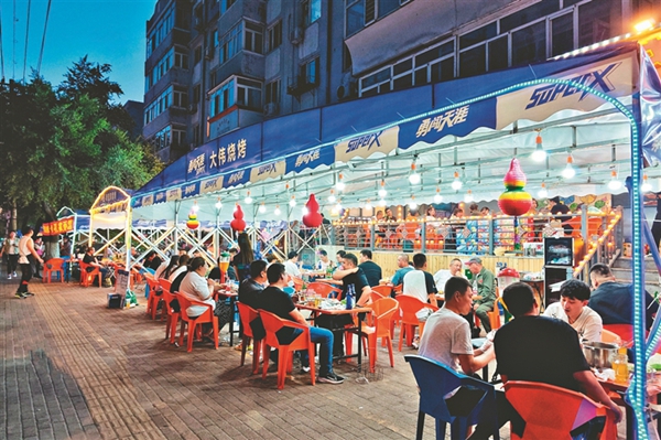夜幕降臨,冰城街路的大排檔里,人們一邊吃著燒烤海鮮,一邊喝著啤酒,談天說地,不亦樂乎……仲夏六月,在大排檔允許外擺政策的推動下,夏日“夜經(jīng)濟”越來越火熱,冰城濃濃的“煙火氣”回歸。大排檔既豐富了市民生活,冰城的快樂消費也開始了。