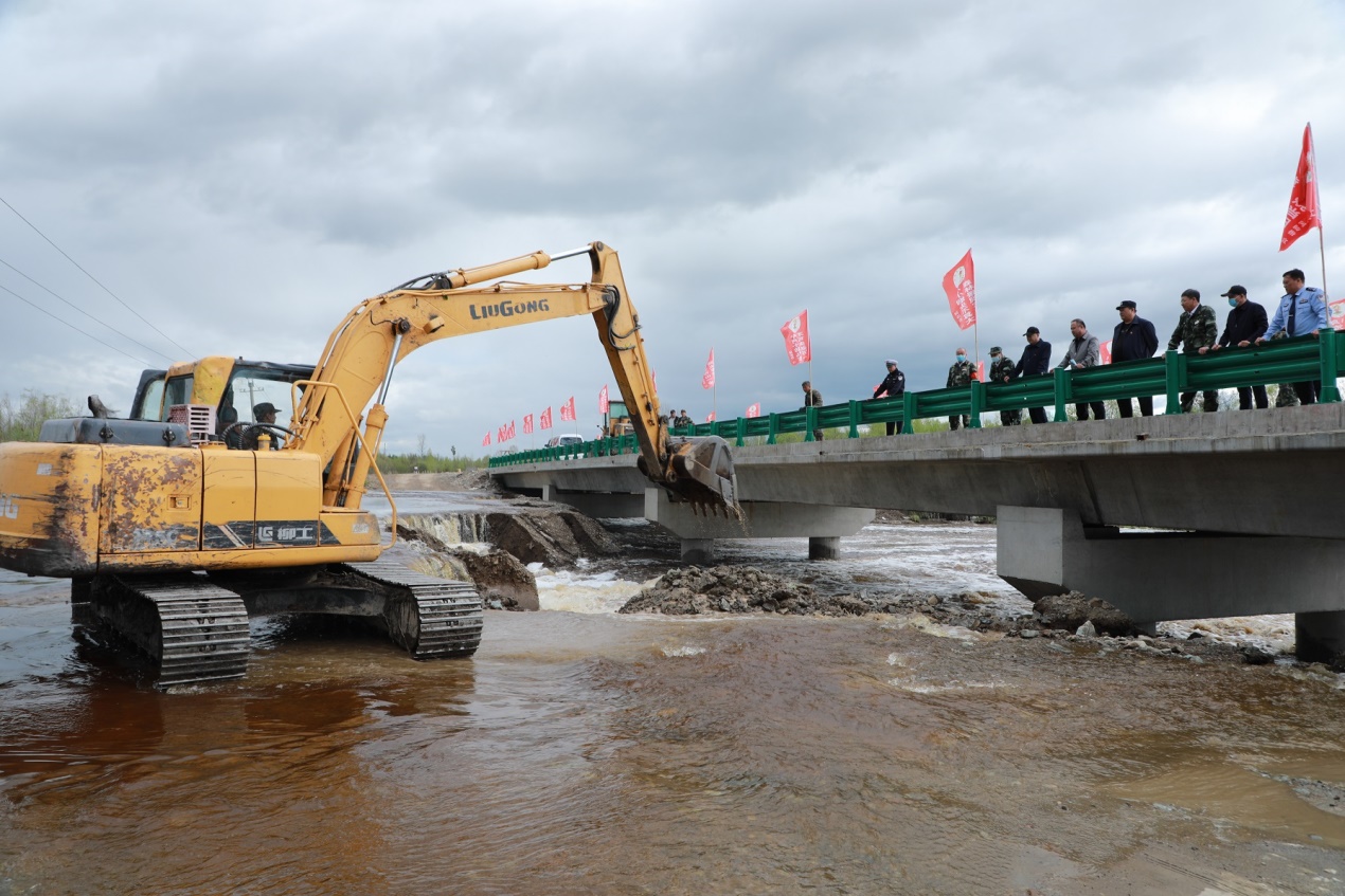 阿木爾林業(yè)局對(duì)楚龍溝大橋進(jìn)行泄洪,確保國(guó)道G111交通安全。王力 攝
