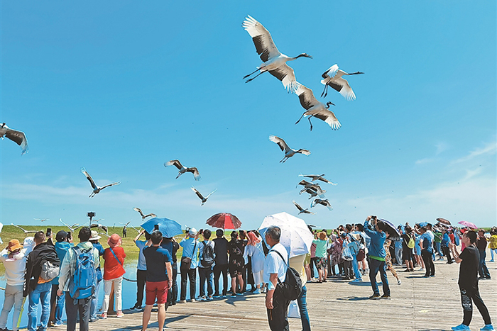 扎龍景區(qū)賞鶴。