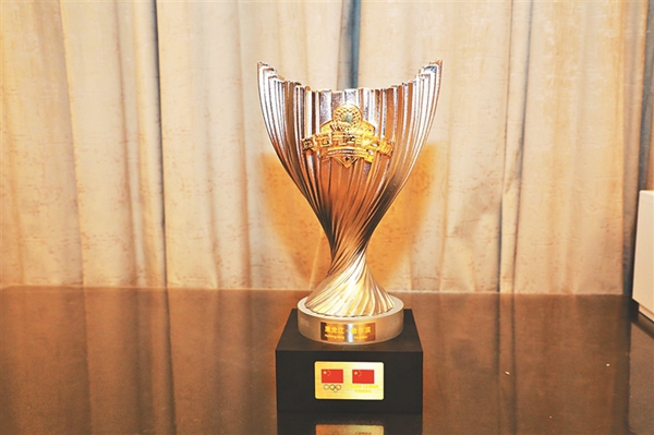 “奧運(yùn)冠軍之城”紀(jì)念獎(jiǎng)杯。劉玉璽攝